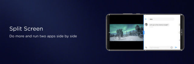 新系统带来了两个超实用的新特性,全新的智能分屏模式。当观看电影时,弹出对话消息,点击后自动进入分屏模式。